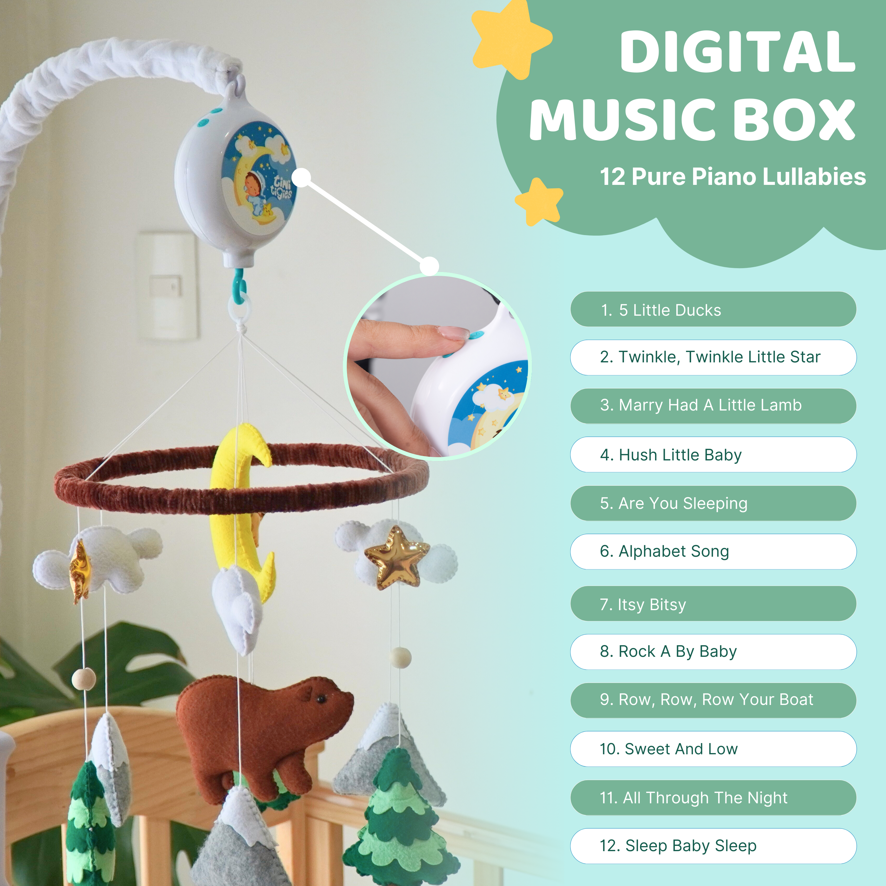 π± SAFE & HANDCRAFTED β Made with high-quality, baby-safe materials and wood accents.