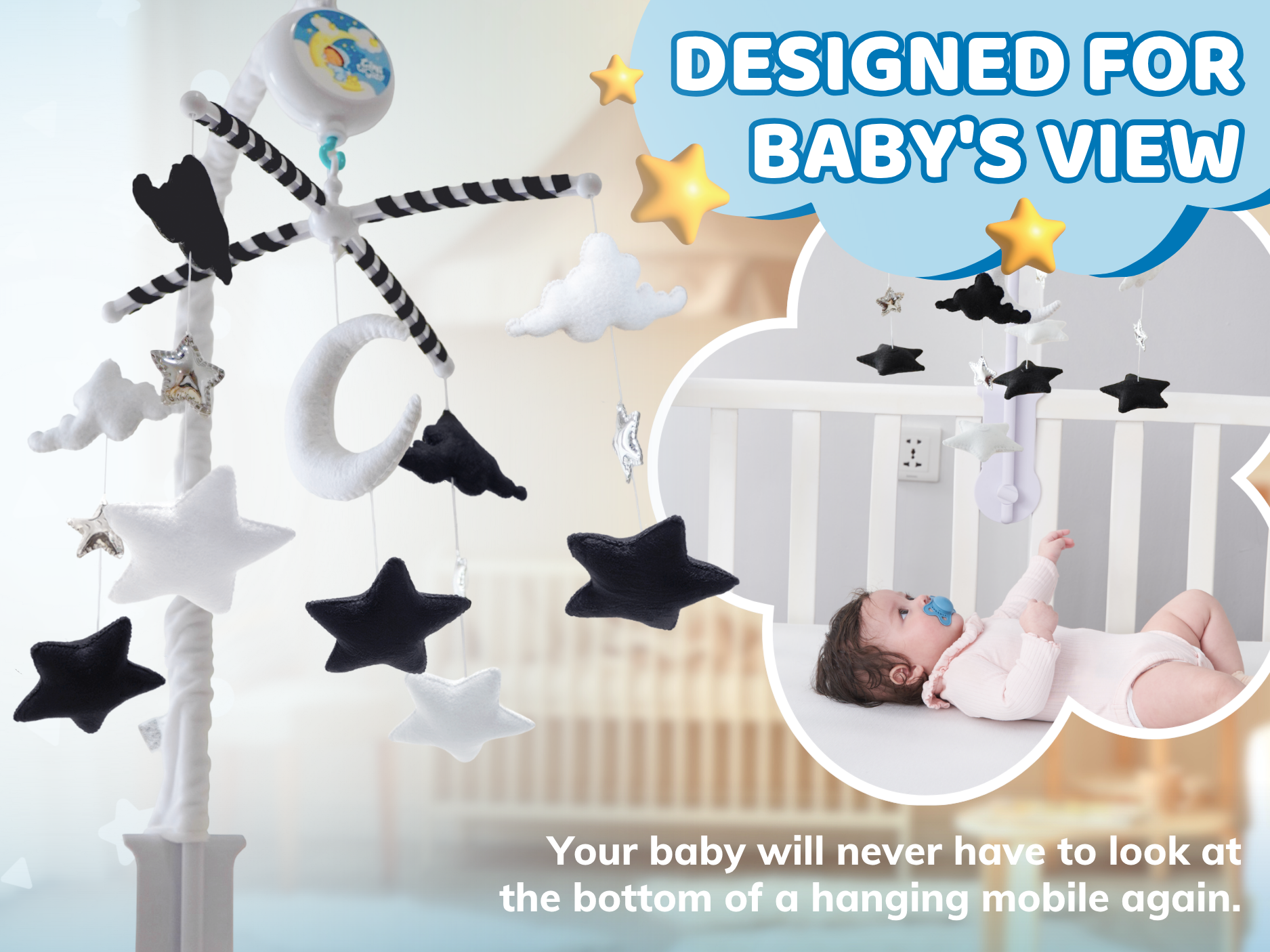 ☁️ MADE FOR BABY’S VIEW – Designed for babies to see clearly and add charm to the nursery.