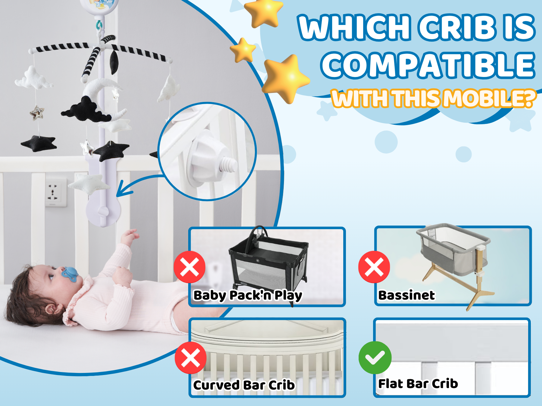 ⚠️ NOTE – Not for bassinets; check compatibility before purchase.