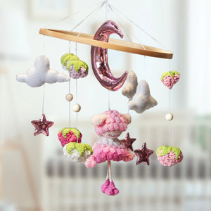 ENGAGING STRAWBERRY PRINCESS THEME - This crib mobile for baby girls brings the whimsical charm of strawberry princess nursery decor to your baby's space, featuring adorable details like strawberries, clouds, and a pink moon that captivate and entertain.